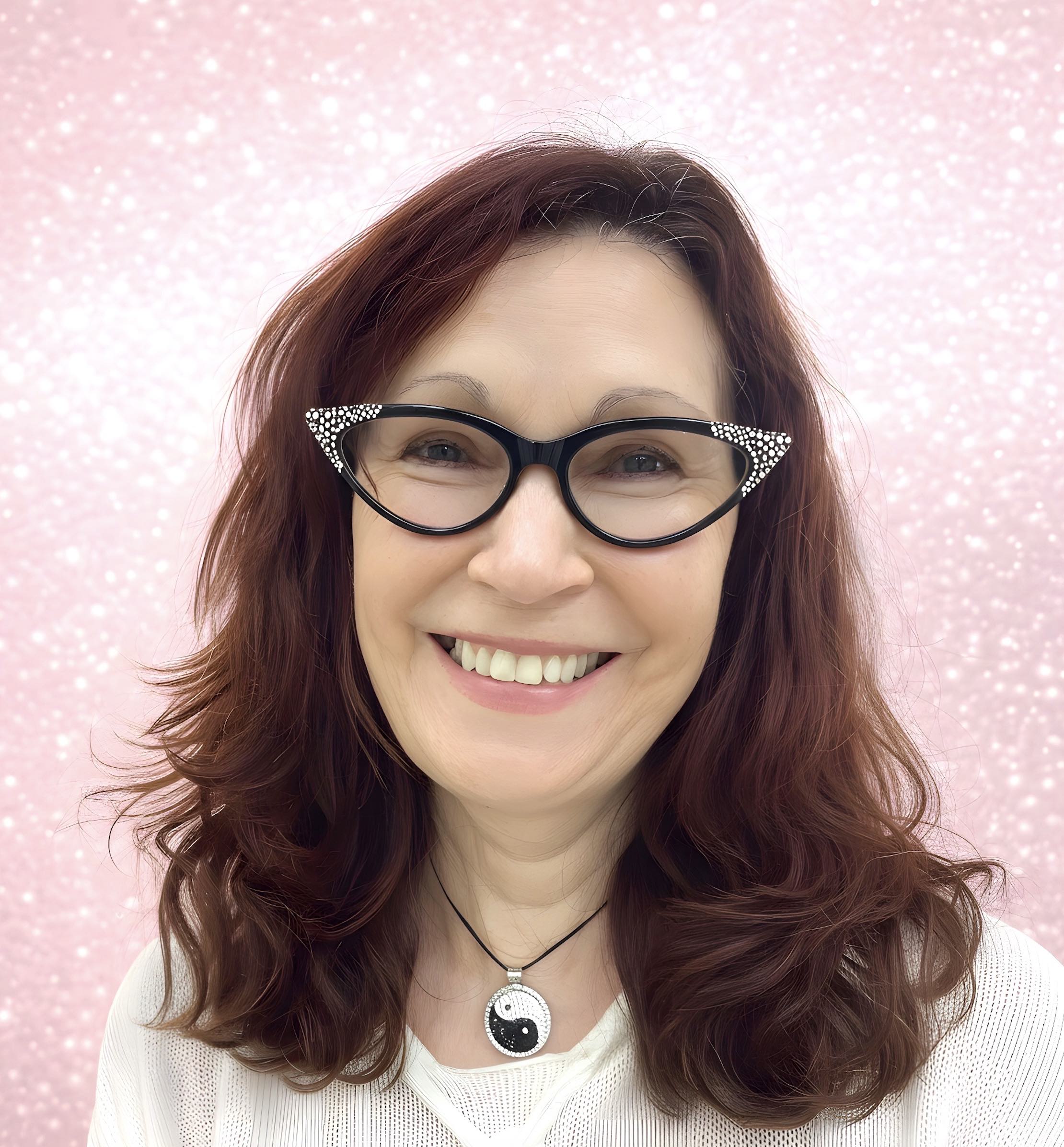 YK01 Pink Pearl FRONT with Crimson Pink TEMPLES with Swarovski Crystals
