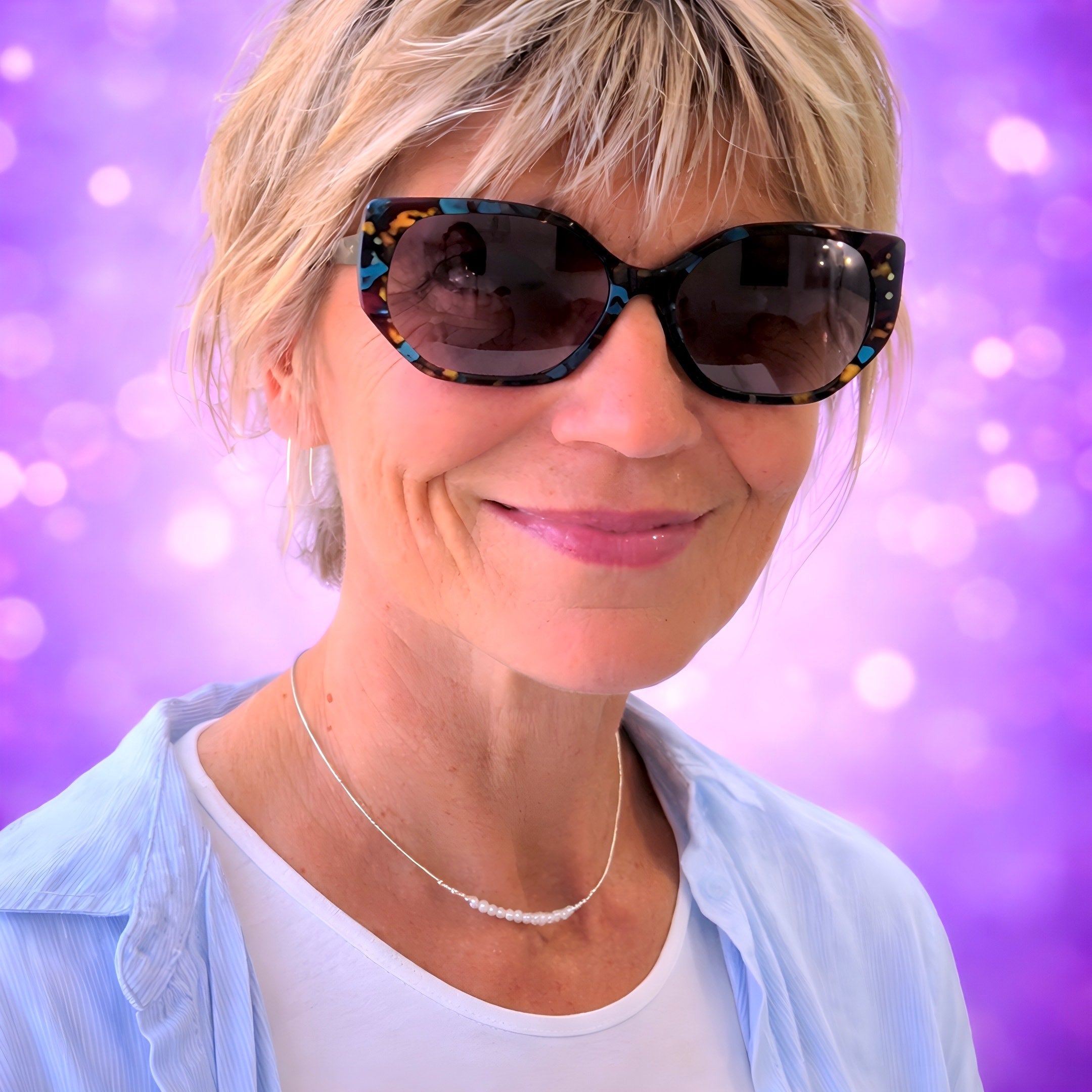 CA5 Shimmer Mid Blue FRONT with Brown Cream Blue & Black Tortoiseshell TEMPLES