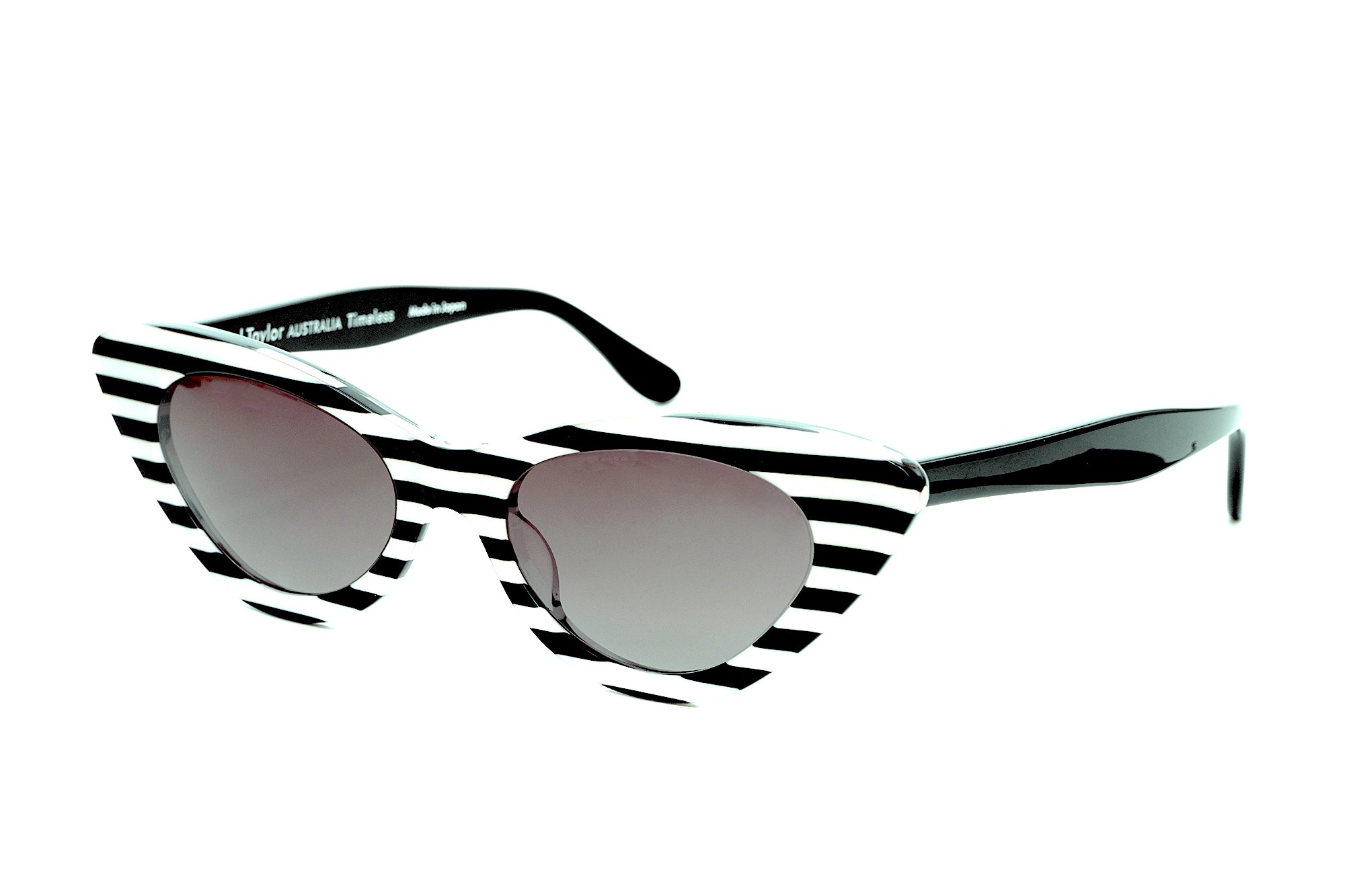 A1 POLARISED Horizontal Black & White Striped FRONT with Black TEMPLES