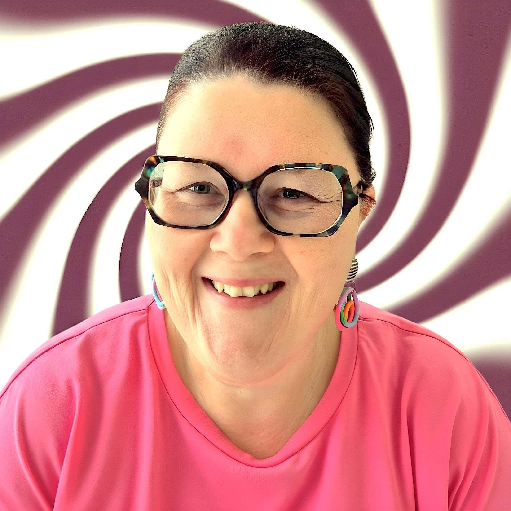 E16 Pink & Purple Swirl FRONT with Pink & Purple Underlay TEMPLES