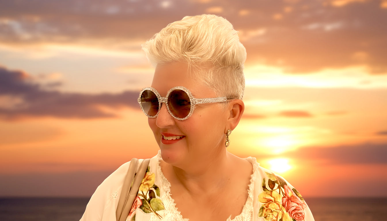This design has Elton John written all over it! Stand out from the crowd with these round sunglasses. It’s a modern take on classic round eye glasses with a slightly thicker rim, making it a bolder expression. The "M2010" design is in a multitude of vibrant & classic colours. Its robust aesthetic is complemented by an equally robust build with German made triple barrel hinges and high quality Italian acetates., furnished with more than 300 Swarovski Crystals!!.... which exemplifies the "RAZZLE DAZZLE" we have all come to love in Sir Elton John! Glistening and sparkling magically throughout the day, truely is an attractive dynamic conversation piece that will elevate you to the stars.